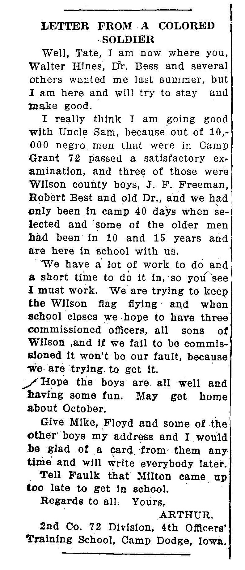 Documents of Historical and Genealogical Interest to Researchers of Wilson County, North Carolina's African-American Past